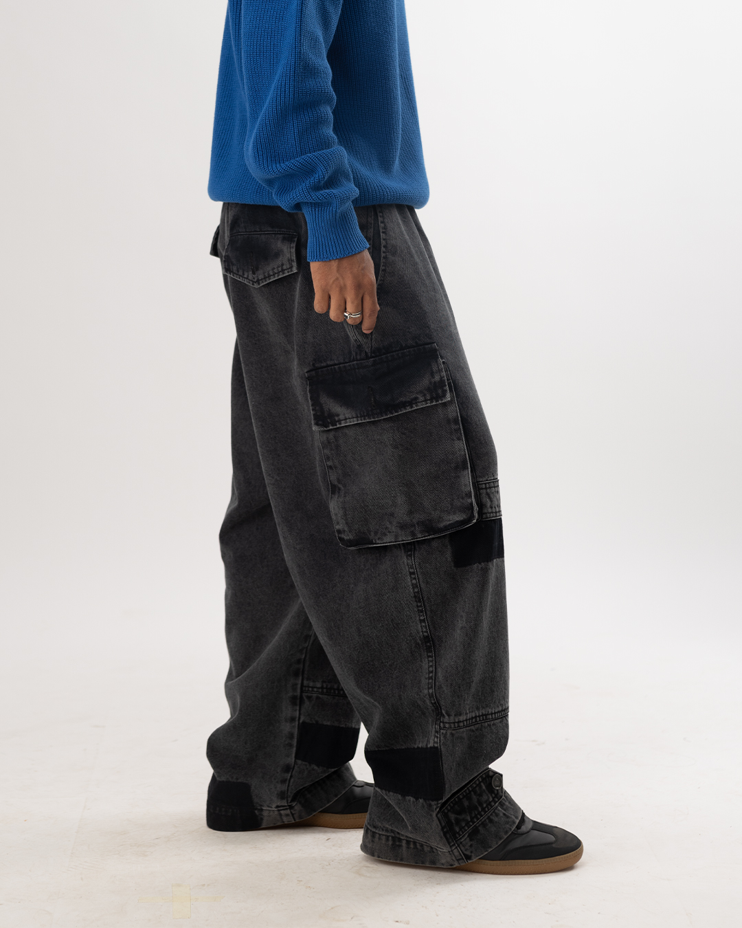 Built from durable denim and finished with raw patchwork detailing, the RWDY Patch Cargo Pants blend utility, character, and street-ready attitude. Multiple pockets, contrast patches, and reinforced stitchwork give each pair a rugged, worn-in look with real functionality. The adjustable drawcord hems let you switch up the shape—wide, cinched, or anything in between. Minimal RWDY branding sits on the leg, keeping it clean while the patches do the talking. A bold cargo built for the ones who move with intent.